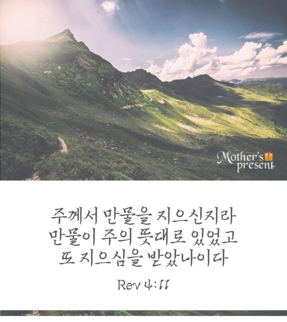 주께서 만물을 지으신지라 만물이 주의 뜻대로 있었고 또 지으심을 받았나이다 하더라... 계4:10~11