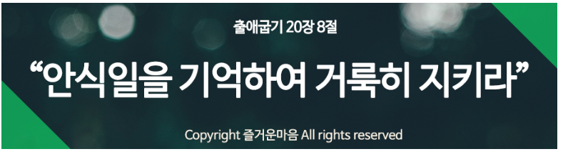 "안식일을 기억하여 거룩히 지켜라" 이는 십계명의 넷째 계명입니다.