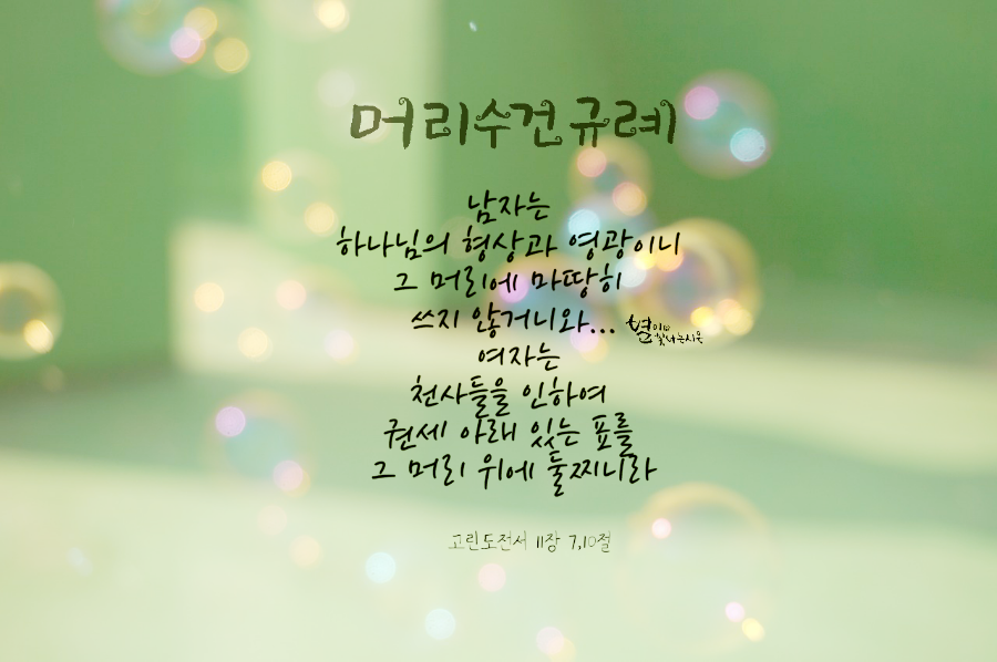 지금은 어떤 교회는 수건을 쓰고 또 어떤 교회는 쓰지 않고 있는데, 머리에 수건을 쓰는 것이 맞는지 쓰지 않는 것이 맞는지 또는 남자가 써야하는지 여자가 써야하는지를 정확히 알기 위해서는 성경을 통해 분명히 살피시어 확실히 판단을 하셔야만 합니다.