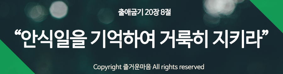 성경은 하나님께서 허락하여 주시고 하늘 축복을 가득 담은 절기가 일요일이 아닌 토요일에 지켜 행하는 안식일임을 알려주였습니다.