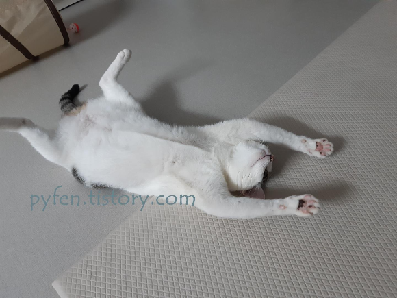 오늘도 어김없이 쇼파 사이에 들어가 누워있네요.