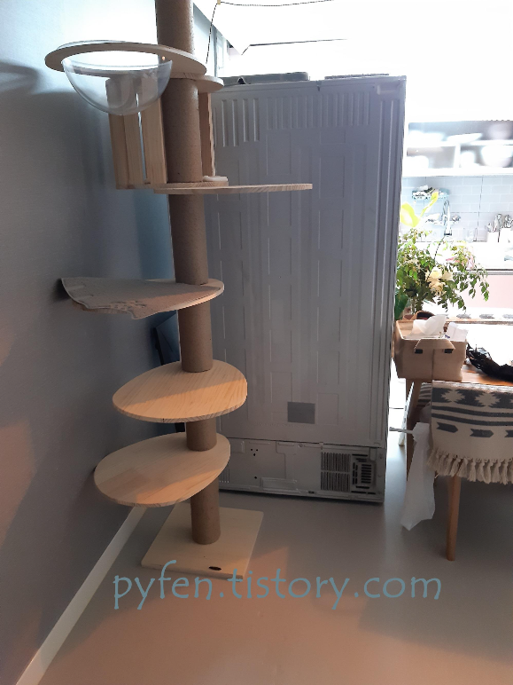 (캣타워를 왜 여기 두었냐고요? 울 냥이가 냉장고 위를 잘 올라가는데 식탁에서 오르내리는 것이 좀 버겁더라고요.. ㅠㅠ)