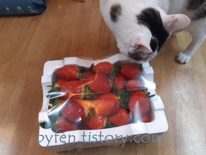 딸기 향이 정말 좋아서 그런지 울 냥이가 자꾸 향을 맡더라고요.