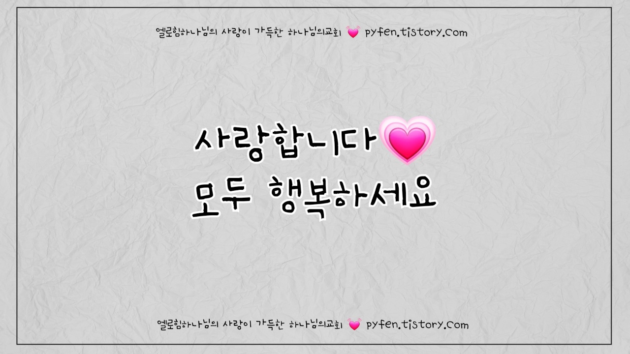 힘들고 지친 인류에게 엘로힘하나님의 사랑이 전해져 모두가 함께 감사함이 넘쳐 행복해지기만을 소원합니다.