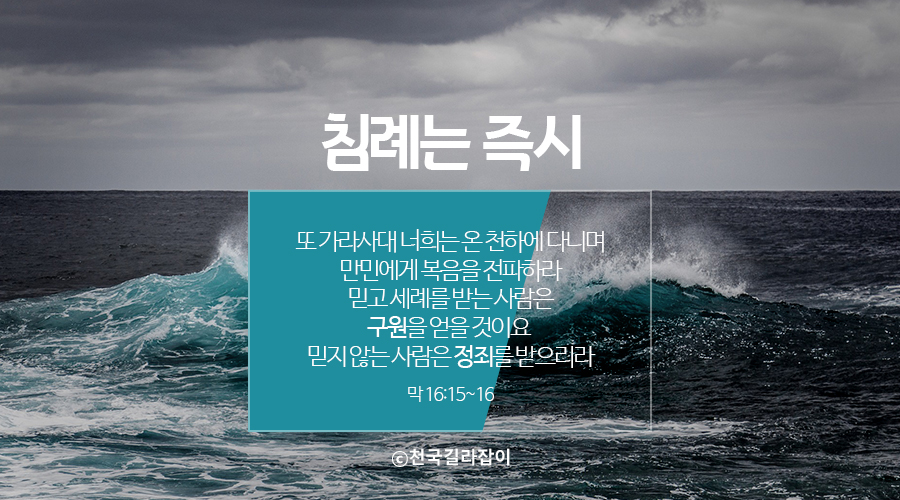 침례를 즉시 행해야 하는 이유는 우리 인생이 한 치 앞을 내다볼 수 없는 존재이기 때문입니다.