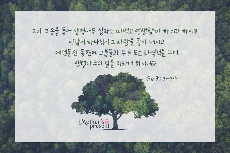 하나님께서는 죄인의 몸으로 생명과에 손을 대지 못하도록 생명나무의 길을 차단하였습니다.