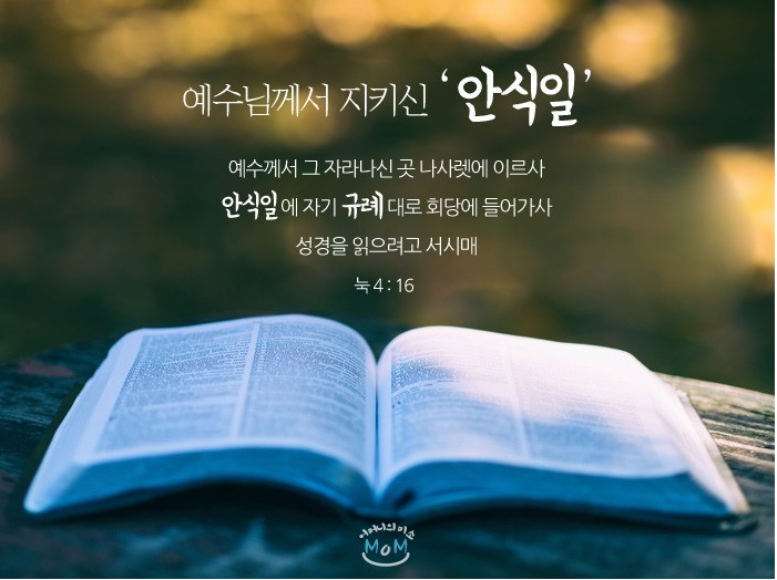 그렇기에 십계명중 넷째 계명으로 주신 안식일을 기억하여 지켜 행합니다.