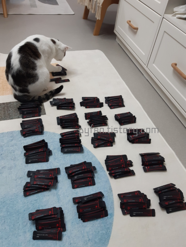 울 냥이가 한줄씩 흩트려놓기 시작했어요. ㅎㅎㅎ