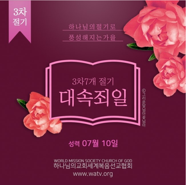 하나님께서는 성력 7월10일을 대속죄일로 정하시고, 열흘 전에 나팔을 불어 대속죄일을 준비하는 날로 나팔절을 정해 대대에 기념하게 하셨습니다.