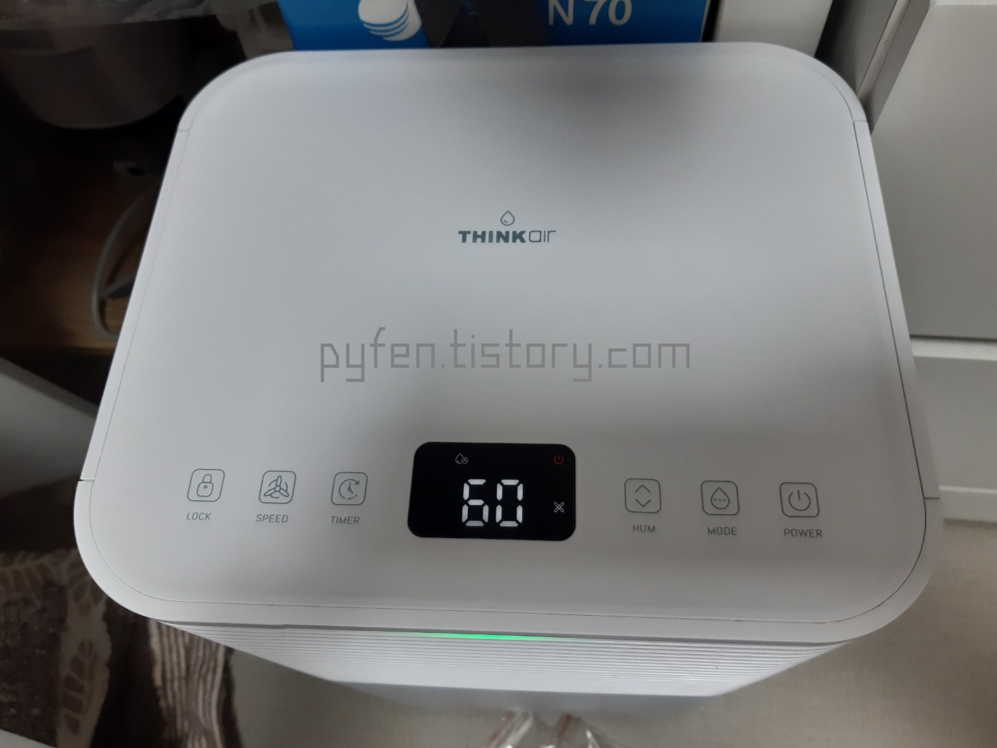 처음 전원을 켜면 제습이 60으로 기본 설정되어 있어요.