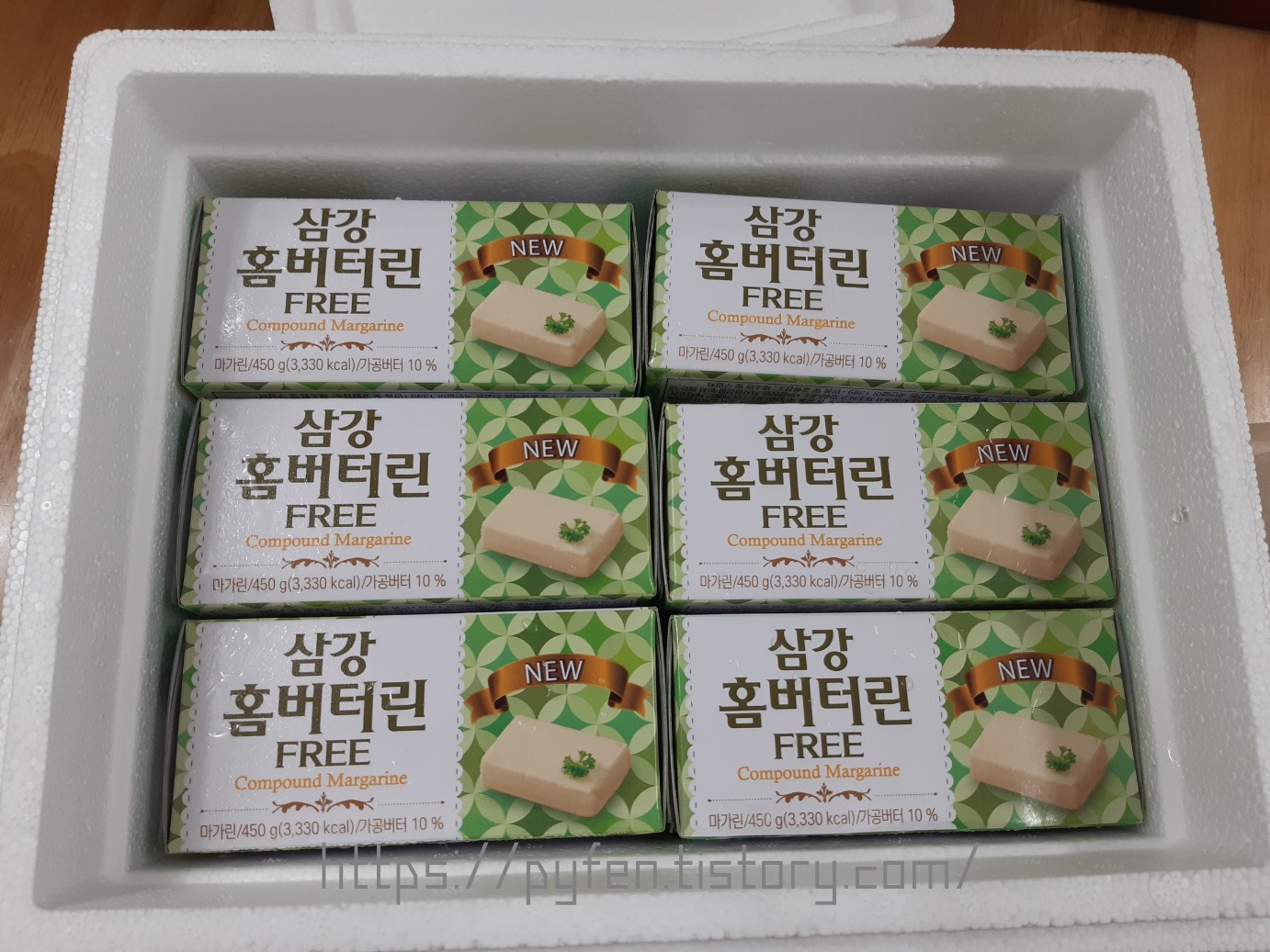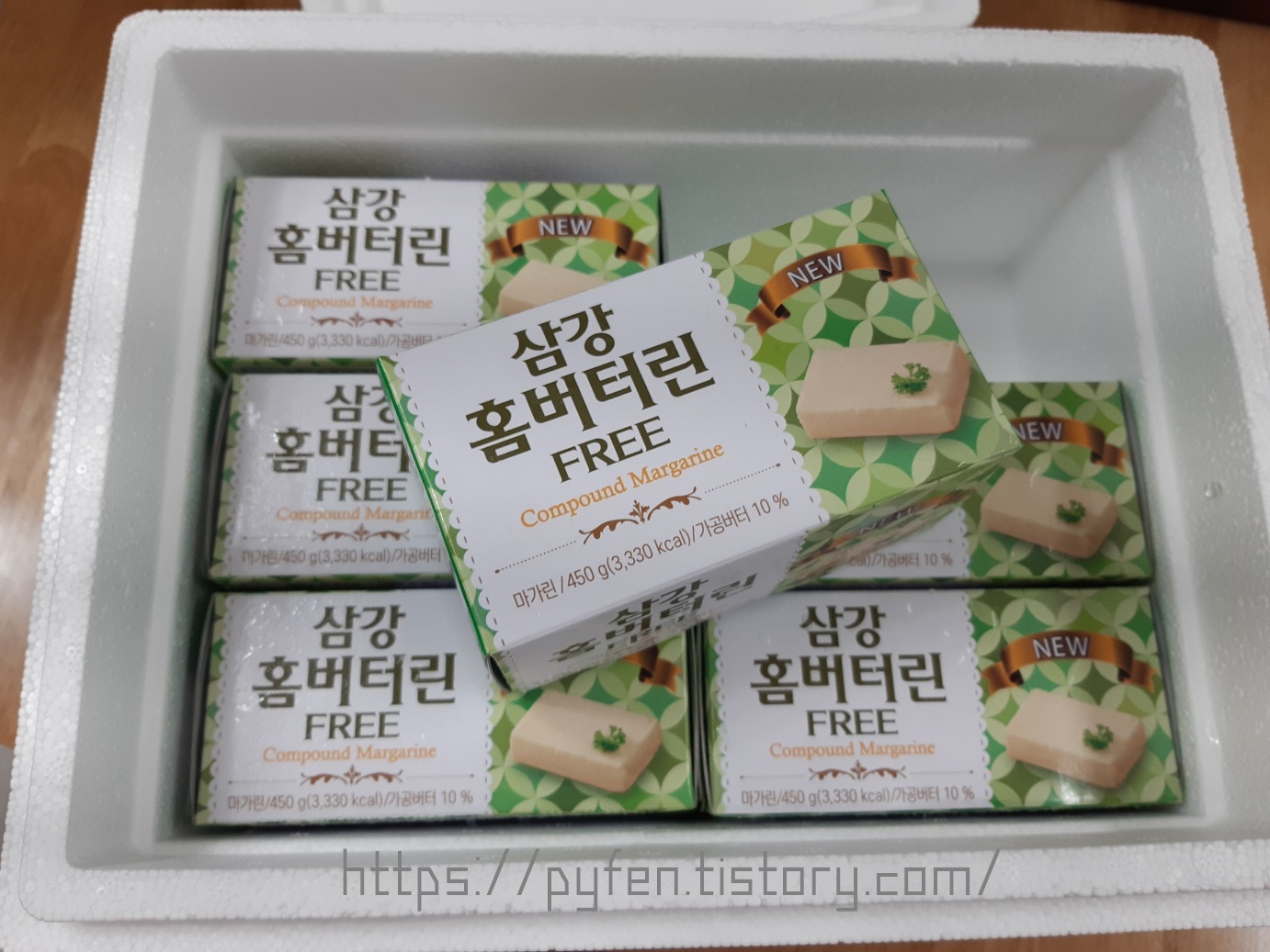 물론 버터가 더 맛있지만... 가격이 만만치 않고 제가 음식할 때 자주 이용하다보니 많이 저렴한 삼강홈버터린을 이렇게 대량으로 구매하게 되었어요.