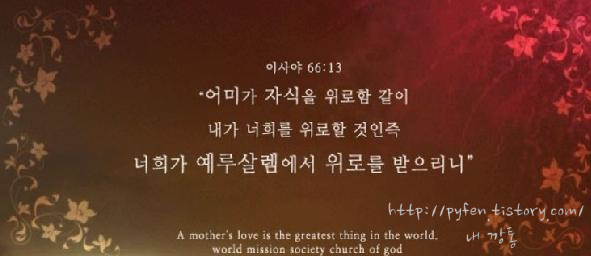 어미가 자식을 위로함 같이 내가 너희를 위로할 것인즉 너희가 예루살렘에서 위로를 받으리니.... -사66:13-