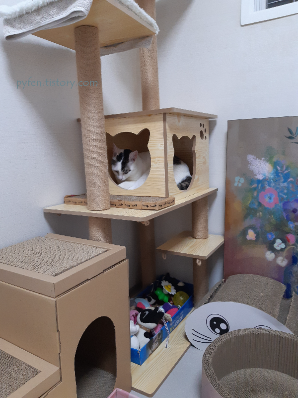 그새를 못참고 집에 들어가서 자리를 잡았어요.