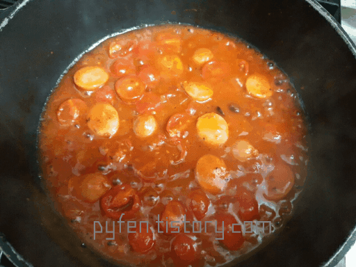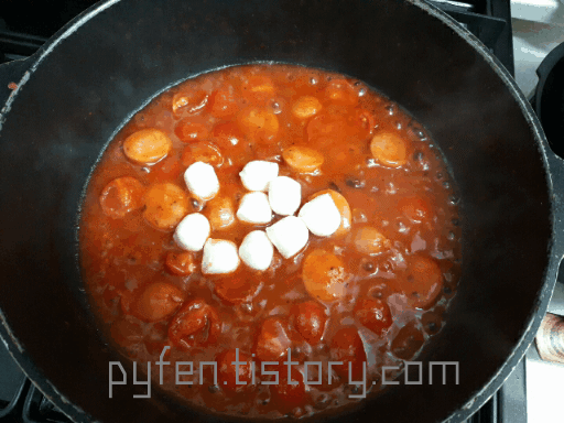 아까 준비해두었던 재료들을 몽땅 넣으면 되요.
