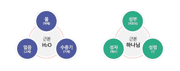 이처럼 하나님께서도 성부시대, 성자시대, 성령시대 세 시대에 각각 다른모습, 다른이름으로 우리를 구원의 길로 인도하여 주신 한분 하나님이세요.