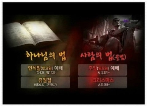 지금껏 우리가 알고 지켜왔던 일요일예배, 크리스마스, 추수감사절은 성경에 없던 불법이였던거에요.