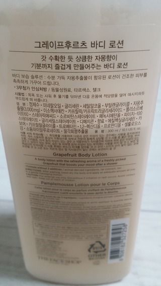 그 뒤 더페이스샾에서 나온 그레이프후르츠 바디로션을 선물받아서 같이 사용하게 되었어요.